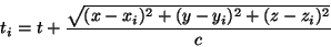 where (xi,yi,zi) is the position of station i.
